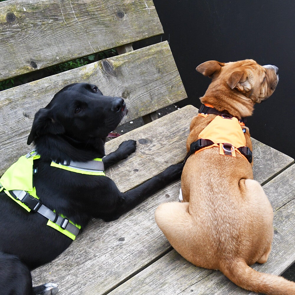 Het Protect-harnas verhoogt de zichtbaarheid van uw hond overdag en 's nachts dankzij de gebruikte materialen. De buitenstof is conform de waarschuwingsnorm EN 471 en de reflecterende randen rond de nek kaatsen het licht van voorbijrijdende auto's terug, waardoor uw hond beter zichtbaar is.
