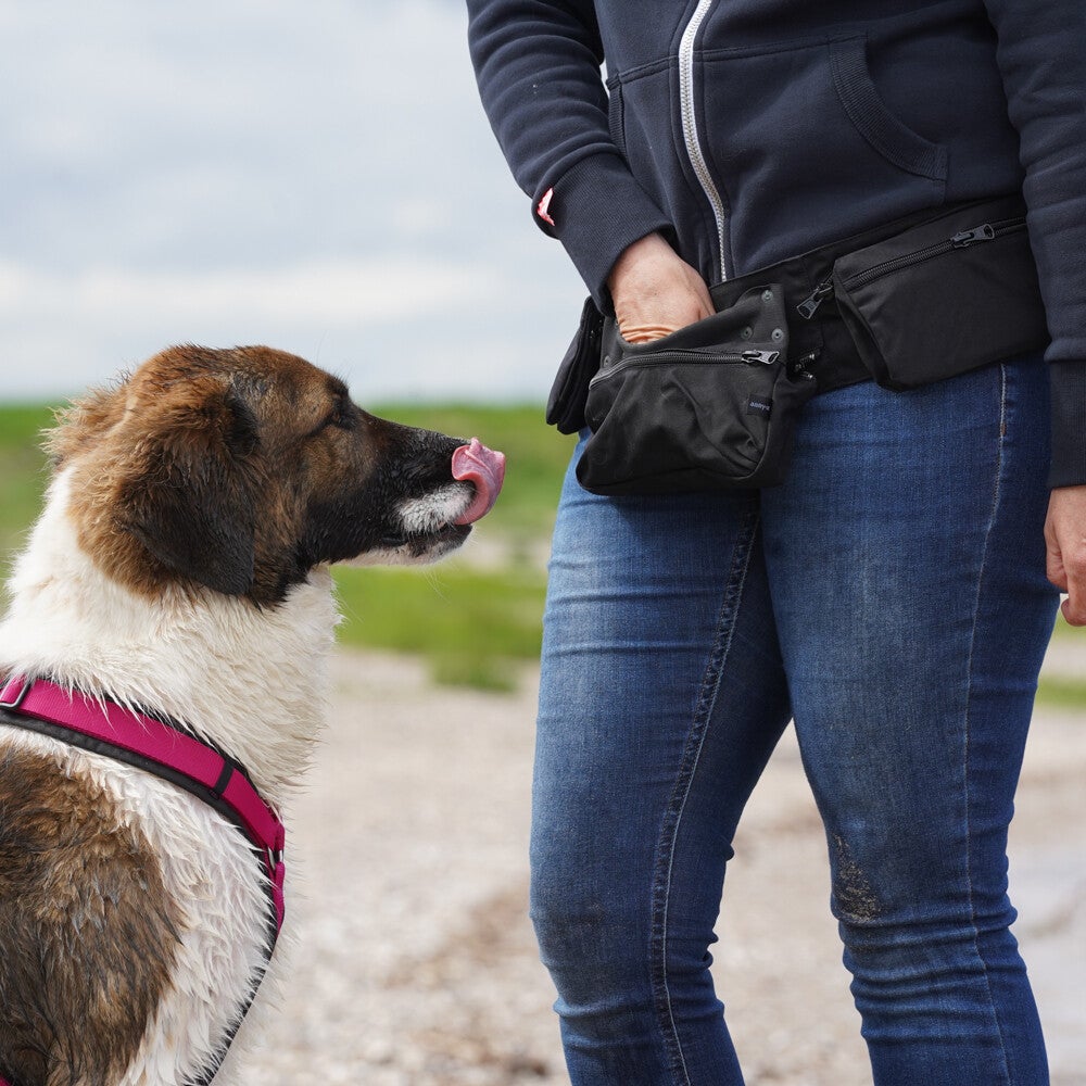 Quick'n easy – het nieuwe heuptasje van AnnyX is ontworpen voor snelle beloningen en heeft een aantrekkelijk design. Het is aanpasbaar voor diverse situaties. De traktatiezak heeft een vak met een elastische band voor snelle toegang en een extra vak met ritssluiting. Met twee verstelbare zijvakken voor flexibele opbergruimte en een multi-adapter om de tassen los te maken, biedt het individuele gebruiksmogelijkheden.