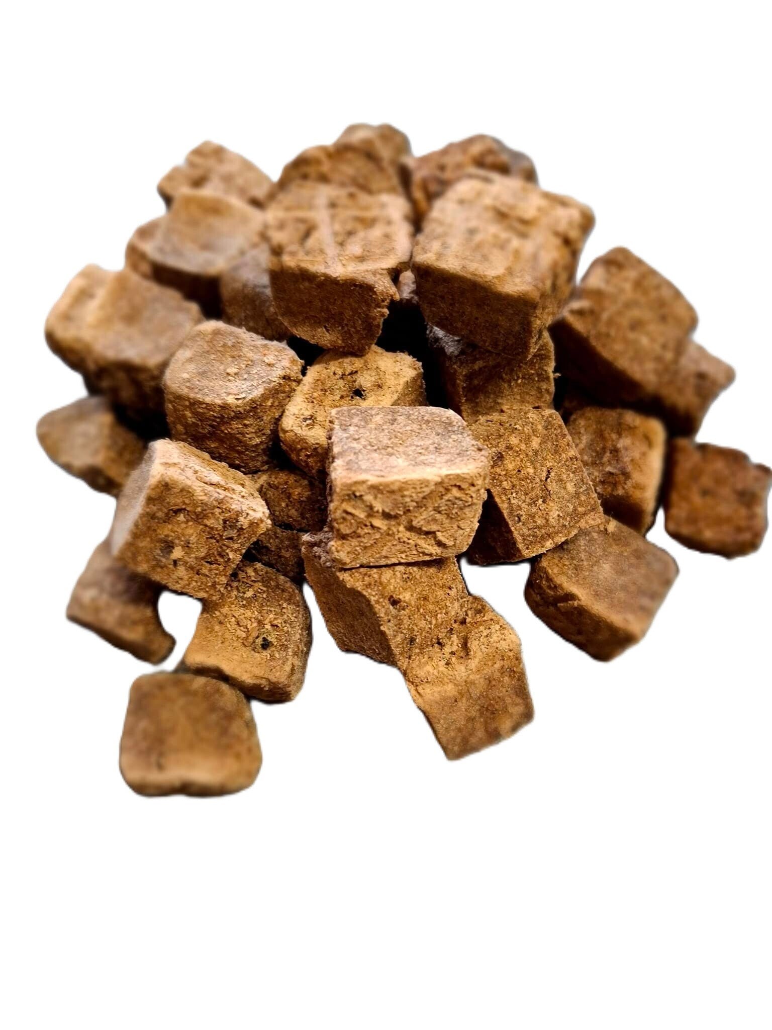- Deze Konijn Blokjes van ca 1 bij 1 cm- zijn een zachte hondensnack in de vorm van een blokje, speciaal gemaakt met vers bereid vlees! Deze smakelijke traktaties zijn perfect voor jouw trouwe viervoeter. Dit is een snack met een onweerstaanbare smaak die zelfs de meest kieskeurige honden zal verleiden. De zachte textuur maakt ze ideaal voor oudere honden of honden met gevoelige tanden. Verwen jouw hond met een gezonde en heerlijke snack die met liefde is bereid. Perfect als beloning of gewoon als tussendoortje!