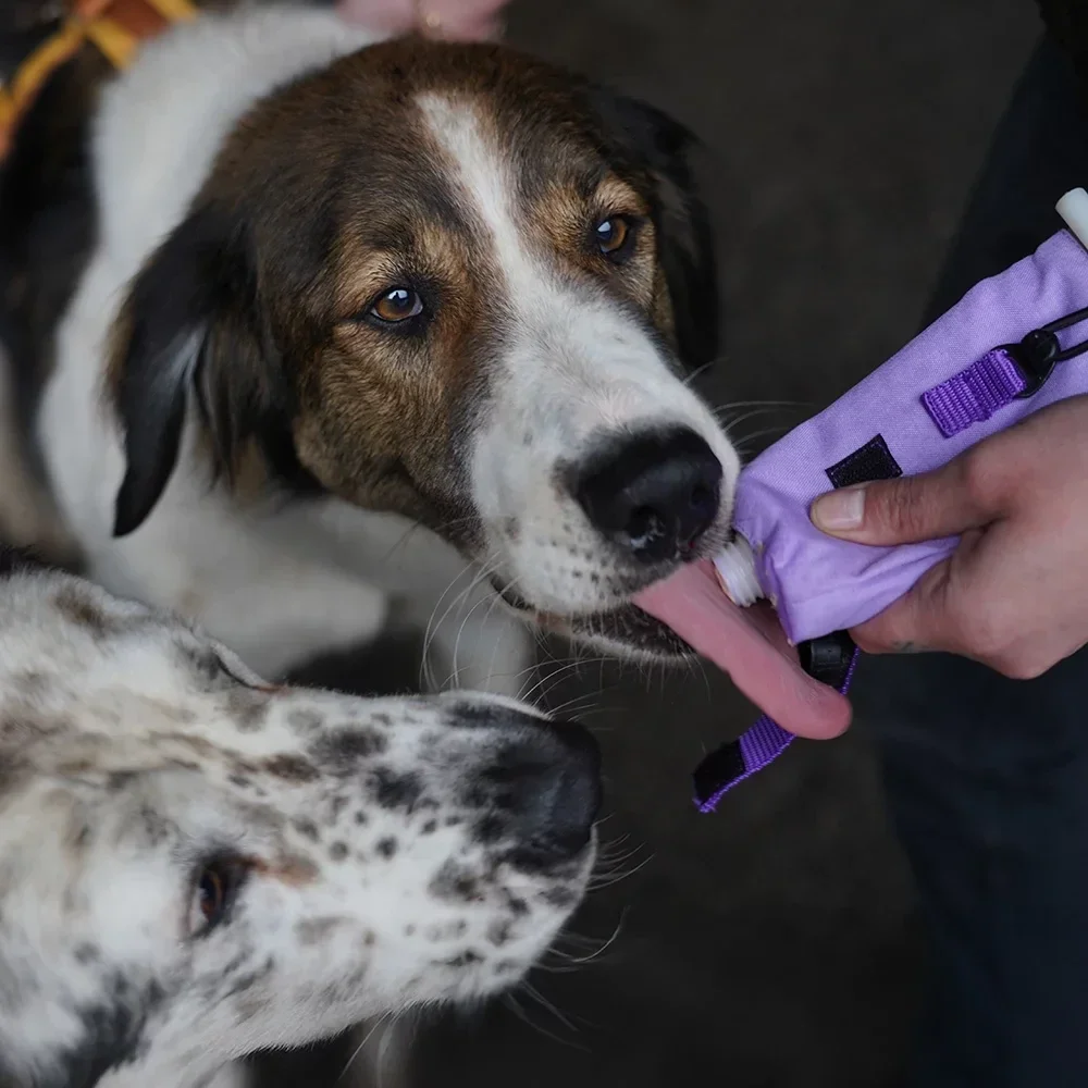 De tube van stevig kunststof is dé nieuwe ster aan het snackfirmament! Of je nu leverworst, roomkaas, gepureerde lever of een tonijntraktatie wilt geven – alles wat smeerbaar en lekker is, past erin. Zelfs babyvoeding en natvoer voor katten zijn welkom – zolang het maar romig en onweerstaanbaar is!